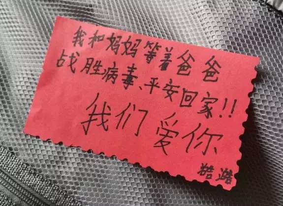 懂事的小錦澔強(qiáng)忍眼淚,囑咐爸爸一定要照顧好自己,做好防護(hù),并保證自己在家會聽媽媽的話,做好學(xué)校作業(yè)。暖心的錦澔還寫了一張賀卡偷偷的放到了爸爸的行李箱中。