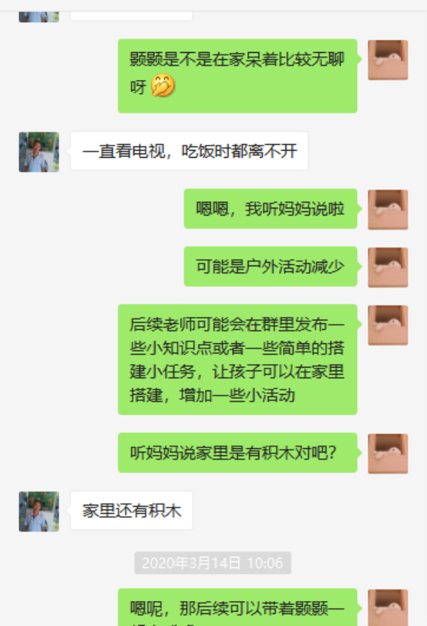 平時孩子的學(xué)習(xí)都是師醫(yī)生與童程童美的老師聯(lián)系,疫情期間,孩子不能到校區(qū)上課,師醫(yī)生又在一線,所以每次都是童程童美的老師與師醫(yī)生聯(lián)系后,將課程視頻發(fā)到姥爺?shù)氖謾C上,讓孩子在家跟著視頻學(xué)習(xí)。