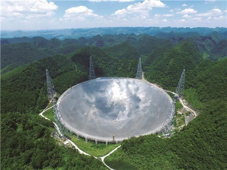 500米口徑球面射電望遠(yuǎn)鏡(Five-hundred-meter Aperture Spherical Telescope),簡(jiǎn)稱FAST。是由中國(guó)科學(xué)院國(guó)家天文臺(tái)主導(dǎo)建設(shè),具有我國(guó)自主知識(shí)產(chǎn)權(quán)、世界最大單口徑、最靈敏的射電望遠(yuǎn)鏡。綜合性能是著名的射電望遠(yuǎn)鏡阿雷西博的十倍。