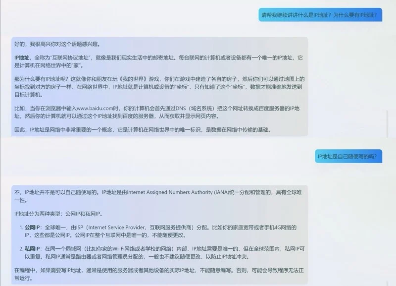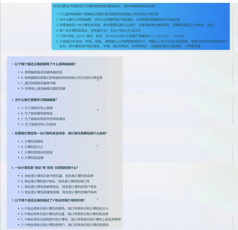 在具體實踐中,首先,在預習階段,老師可以布置探究性作業(yè),引導學生有目的的使用AI助教系統(tǒng)進行自主探究,提前了解即將學習的內容,然后在課堂上分享和討論探究結果。這不僅培養(yǎng)了學生的自主學習能力,還激發(fā)了他們的好奇心和探索精神。