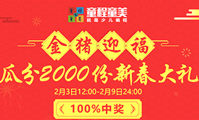參加童程童美春節(jié)迎福抽獎(jiǎng)活動(dòng),開開心心玩游戲,輕輕松松抽大獎(jiǎng)!一起瓜分2000份新春大禮!100%中獎(jiǎng)哦!