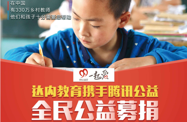 達內(nèi)教育集團攜手友成基金會與騰訊公益共同發(fā)起了“20元為鄉(xiāng)村教師啟夢”的教育公益項目,該項目將于9月7日-9月9日在微信 - 錢包 - 騰訊公益頻道正式推出。