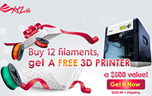 最近,著名的臺(tái)灣3D打印機(jī)制造商三緯國(guó)際(XYZprinting)發(fā)起了一項(xiàng)促銷活動(dòng),在3月31號(hào)之前您可以免費(fèi)獲得一臺(tái)價(jià)值499.95美元的da Vinci 1.0 Blue 3D打印機(jī),只要您購(gòu)買12卷該公司的線材,而購(gòu)買線材的花費(fèi)一共才335.4美元,還包郵。