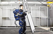 一位下肢失去運(yùn)動功能的體驗(yàn)者,穿上形似簡化版“鋼鐵俠”的腿部外骨骼機(jī)器人,按下按鈕,機(jī)器人感知到患者的運(yùn)動意圖后,協(xié)助體驗(yàn)者像普通人一樣行走……