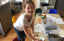 幾周前,在舊金山灣區(qū)發(fā)現(xiàn)博物館(Bay Area Discovery Museum,BADM),五歲的Jack Stabenow爬上凳子來觀察一臺用高功率激光切割紙板的機器。紅色激光束精確到沿著Jack剛剛在平板電腦上用手指畫的彎彎曲曲的建筑設計進行切割。