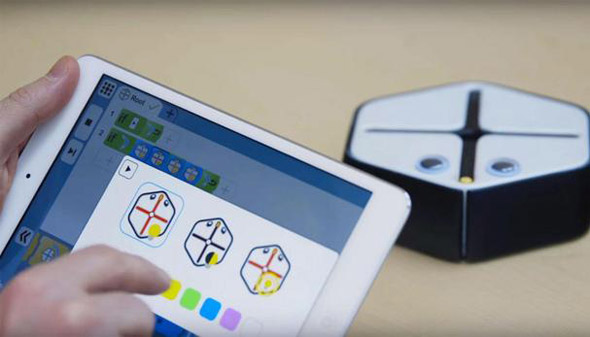 Root可以在白板上爬行,并依照命令使用自身攜帶的記號筆和橡皮擦。孩子們可以使用配套的應用程序Square來對其進行控制,后者可通過圖標的移動實現(xiàn)基本的if-then規(guī)則。如此一來,就連兒童也能夠讓機器人在白板上畫畫然后再后退擦掉圖案,而年紀大一點的孩子則可以切換到應用中基于文字的高級模式。