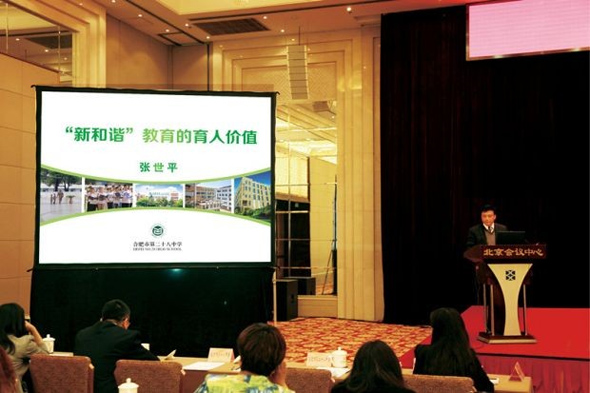 合肥二十八中也是包河區(qū)學(xué)校文化建設(shè)示范校,學(xué)校文化建設(shè)的經(jīng)驗也得到北京師范大學(xué)教育管理學(xué)院院長、中國教育學(xué)會名譽會長顧明遠教授的指導(dǎo)和肯定。去年4月17日,北京市第二批中小學(xué)學(xué)校文化建設(shè)創(chuàng)建活動總結(jié)會暨學(xué)校文化主題論壇在北京舉行,本次論壇由北京市教育委員會主辦,國家教育部、北京師范大學(xué)、北京教育學(xué)院、北京市區(qū)教育部門負責(zé)人以及北京市350余所中小學(xué)校長參加論壇。合肥二十八中校長張世平作為全國唯一一所中學(xué)校長應(yīng)邀出席本次主題論壇,并在大會上作了題為“新和諧教育的育人價值”的主題發(fā)言。